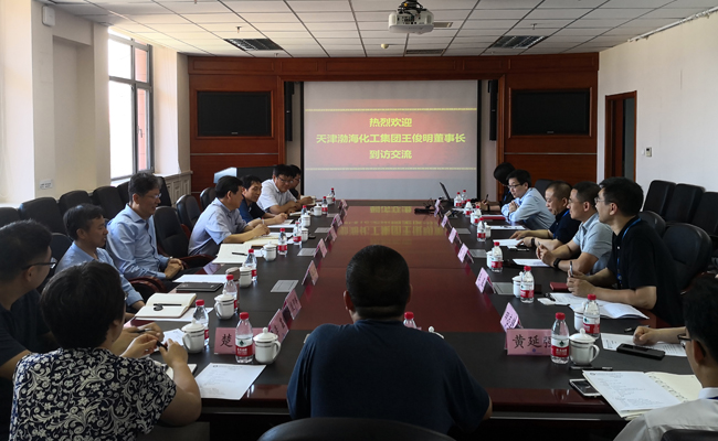6月19日至20日,天津渤?;ぜ瘓F(tuán)有限責(zé)任公司(以下簡稱“渤化集團(tuán)”)黨委書記、董事長王俊明一行訪問中國科學(xué)院大連化學(xué)物理研究所。大連化物所所長劉中民、副所長蔡睿、科研及職能部門相關(guān)人員參加交流活動。