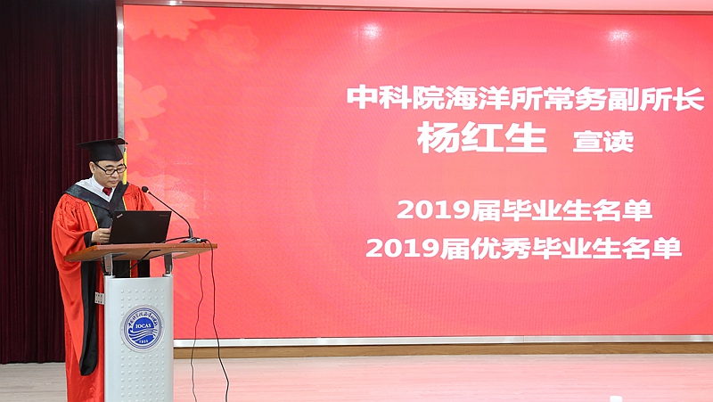 典禮在雄壯的國(guó)歌聲中拉開(kāi)序幕。楊紅生常務(wù)副所長(zhǎng)宣讀了2019年通過(guò)畢業(yè)答辯的113名學(xué)生名單(博士研究生61人、碩士研究生52人),以及獲得國(guó)家、山東省、中科院及海洋所等各類獎(jiǎng)項(xiàng)的優(yōu)秀畢業(yè)生名單,并對(duì)他們順利畢業(yè)表示熱烈祝賀。