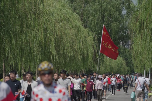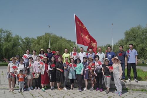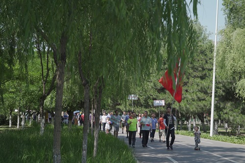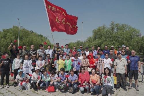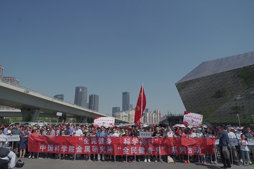 全體人員在金屬所旗幟的引領下邁開矯健的步伐,向目標闊步前行。一路上,微風輕拂、絲絳拂堤、繁花相隨、景色宜人,大家精神飽滿,心情舒暢。在熱烈而溫馨的氣氛中,浩浩蕩蕩的隊伍宛如一條長龍,蜿蜒盤繞在美麗的沈水河畔。在金戈鐵馬的秦開塑像前和北門轉盤處,大家自發(fā)聚集在金屬所旗幟下合影留念。