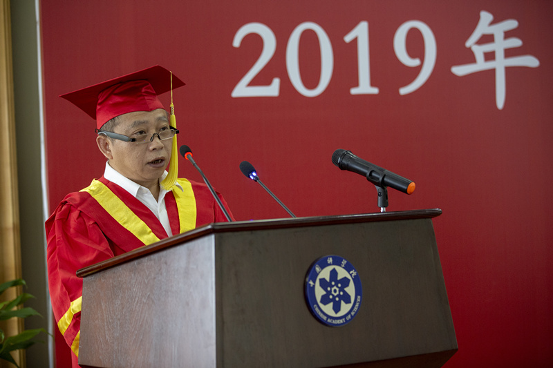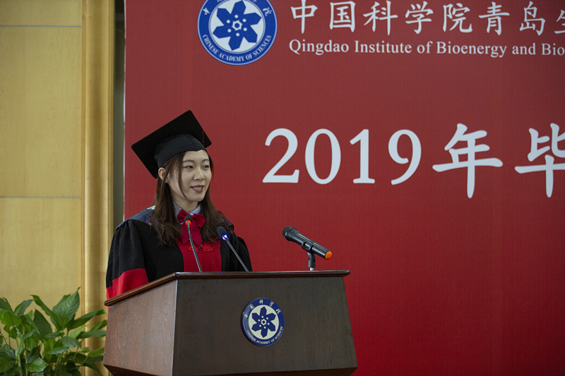 隨后,劉中民為典禮致辭。向畢業(yè)生及家人表示衷心的祝賀,向教書育人、悉心培養(yǎng)人才的導(dǎo)師們表示感謝。他在致辭中指出,研究所積極落實(shí)習(xí)近平總書記提出的“在我國科技創(chuàng)新活動中,新型舉國體制是實(shí)施國家重大科技項(xiàng)目的‘金鑰匙’”的要求和號召,于今年6月17日,山東省、中科院、青島市三方正式簽署協(xié)議共建山東能源研究院,當(dāng)前,青島能源所迎來了前所未有的發(fā)展機(jī)遇,為青年人提供了施展才華的廣闊舞臺。期待畢業(yè)生們有理想有追求,以國家興亡、匹夫有責(zé)的情懷,把個(gè)人的理想抱負(fù)融入到國家發(fā)展的洪流中,去追逐中華民族偉大復(fù)興的夢想,為人類文明進(jìn)步貢獻(xiàn)力量。最后,衷心祝愿畢業(yè)生們,勇于科技創(chuàng)新,搏擊長空、鵬程萬里!