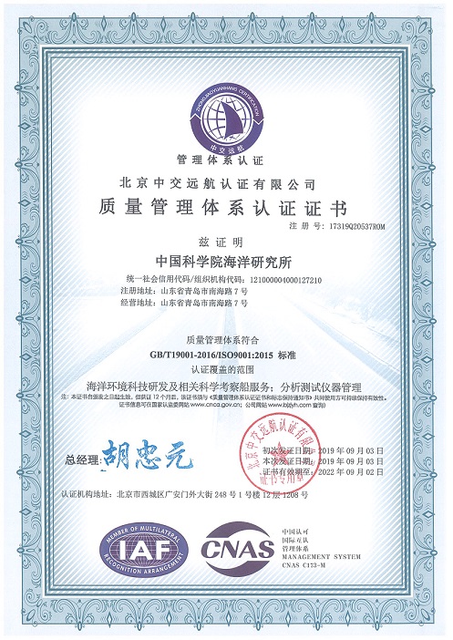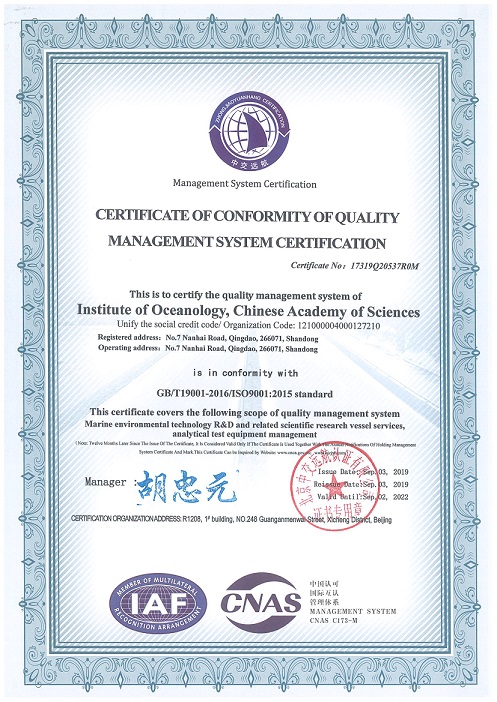 ISO9001質(zhì)量管理體系認(rèn)證證書(shū)作為研究所重要的資質(zhì)文件之一,對(duì)規(guī)范管理以及提高管理質(zhì)量有重要推動(dòng)作用。國(guó)務(wù)院印發(fā)《關(guān)于加強(qiáng)質(zhì)量認(rèn)證體系建設(shè)促進(jìn)全面質(zhì)量管理的意見(jiàn)》以來(lái),海洋所高度重視質(zhì)量管理工作,不斷完善相關(guān)規(guī)章制度,推進(jìn)創(chuàng)新管理,為研究所海洋科研活動(dòng)的順利開(kāi)展提供了有力保障。