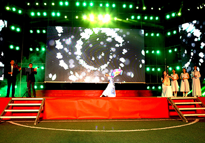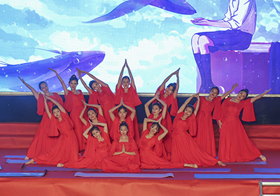 第三篇章“追夢(mèng)”體現(xiàn)了大連化物所人追尋夢(mèng)想,堅(jiān)定前行的情懷。瑜伽舞蹈《大魚》舒展優(yōu)美,贊美了為實(shí)現(xiàn)夢(mèng)想而勇敢的擔(dān)當(dāng)與守護(hù)。大連化物所自由基樂(lè)隊(duì)與耿旭輝副研究員、校友舒清柱聯(lián)袂表演的《真的愛(ài)你》演奏精湛,演唱精彩,唱出了每一個(gè)化物所人的心聲。舞蹈《我的夢(mèng)》優(yōu)美而有力量,跳出了化物所人追夢(mèng)路上永不言棄的執(zhí)著追求。由青年科學(xué)家、管理骨干、職工、學(xué)生、校友共同演繹的歌曲《我們都是追夢(mèng)人》展現(xiàn)了新一代化物所人為了夢(mèng)想勇敢拼搏的信心和決心。本篇章最后是全體演員齊唱的《我和我的祖國(guó)》,歌聲引起全場(chǎng)觀眾大合唱,伴著深情的歌聲,舞動(dòng)的熒光棒照亮了每個(gè)人笑意盈盈的臉龐,燈光照耀所園區(qū)上空的夜幕,在每個(gè)人腦海中留下今宵永恒的印記。