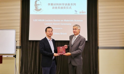 來訪期間,Ekkes Br ck教授為我所科研人員和研究生作了題目為“Generating Electricity from Waste Heat using Magneto-structural Materials”的學(xué)術(shù)報(bào)告。報(bào)告前,劉崗副所長代表金屬研究所向Ekkes Br ck教授頒發(fā)了李薰講座獎(jiǎng)獎(jiǎng)牌。報(bào)告和頒獎(jiǎng)儀式由張志東研究員主持。Ekkes Br ck教授的報(bào)告引發(fā)了我所科研人員和研究生的強(qiáng)烈反響,報(bào)告結(jié)束后,Ekkes Br ck教授與我所科研人員開展了學(xué)術(shù)交流。