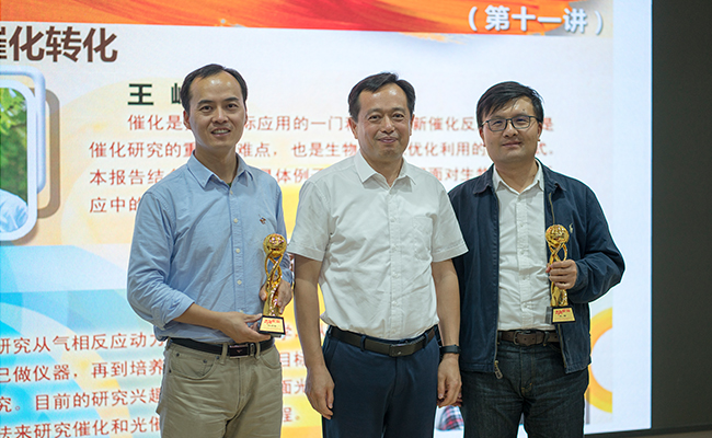 9月23日,由中國科學院大連化學物理研究所青年創(chuàng)新促進會(以下簡稱“青促會”)、所團委、所博士后聯(lián)誼會共同舉辦的“大連化物所青年論壇”第十一講在能源樓(A座)一樓會議室舉行。本次論壇邀請大連化物所生物能源研究部部長王峰研究員和分子反應動力學國家重點實驗室副主任任澤峰研究員,分別以“生物質(zhì)催化轉(zhuǎn)化”和“自己做儀器,做第一無二的研究”為題進行了報告。黨委副書記、紀委書記毛志遠出席本次論壇并為兩位報告人頒發(fā)“大連化物所青年論壇”特制獎杯。本次論壇由青促會理事長田文明主持,所內(nèi)青年職工、博士后、研究生等聽取了報告。