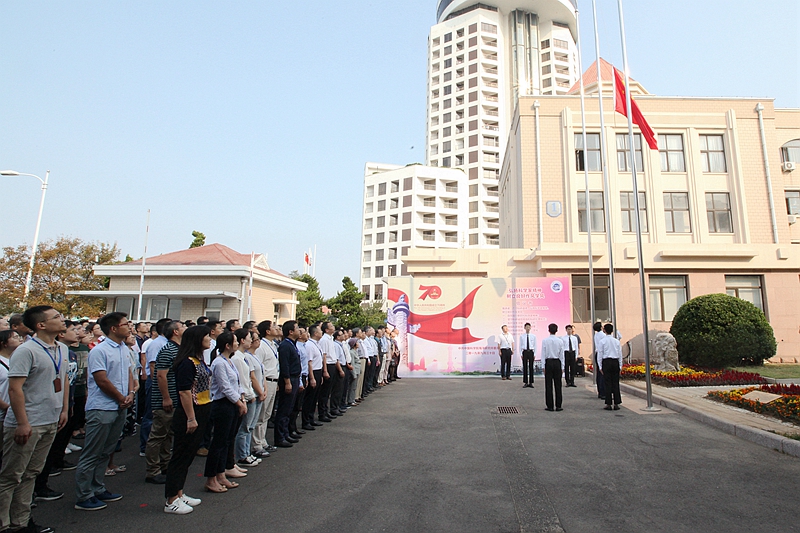 早上8時(shí)30分,升旗儀式正式開始。隨著雄壯豪邁的國(guó)歌響起,海洋所南海路園區(qū)和西海岸園區(qū)參加儀式的全體人員高唱國(guó)歌,滿懷崇敬之情注視著鮮艷的五星紅旗冉冉升起,為祖國(guó)母親70歲生日送上最美好的祝福。
