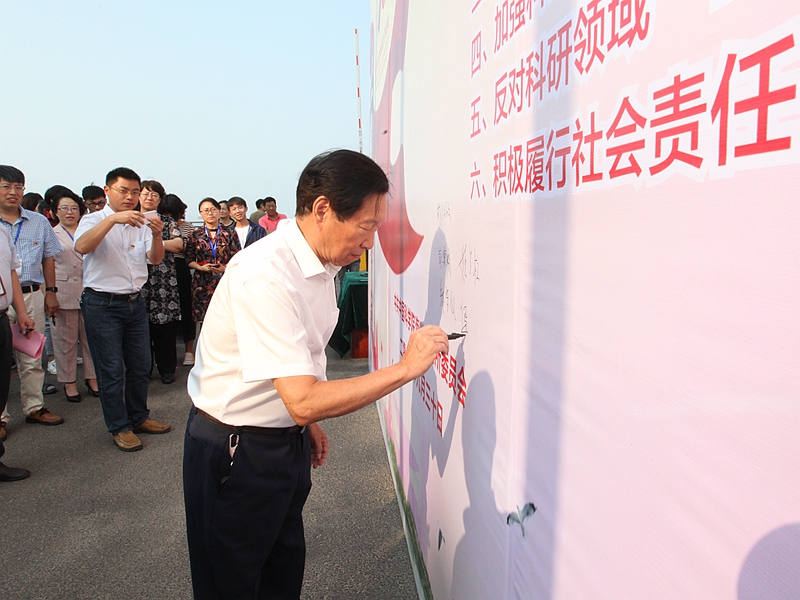 為弘揚(yáng)科學(xué)家精神,加強(qiáng)作風(fēng)和學(xué)風(fēng)建設(shè),升旗儀式結(jié)束后,海洋所舉行了“弘揚(yáng)科學(xué)精神、樹立良好作風(fēng)學(xué)風(fēng)”倡議書簽名活動(dòng),海洋所鄭守儀院士、胡敦欣院士、侯保榮院士等帶頭在倡議書上簽名。