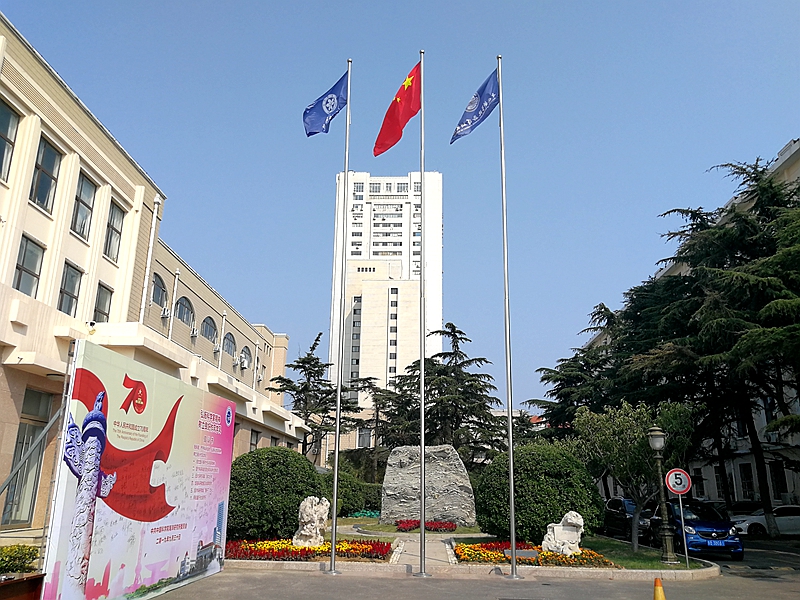 迎風(fēng)飄揚(yáng)的國(guó)旗、院旗和所旗