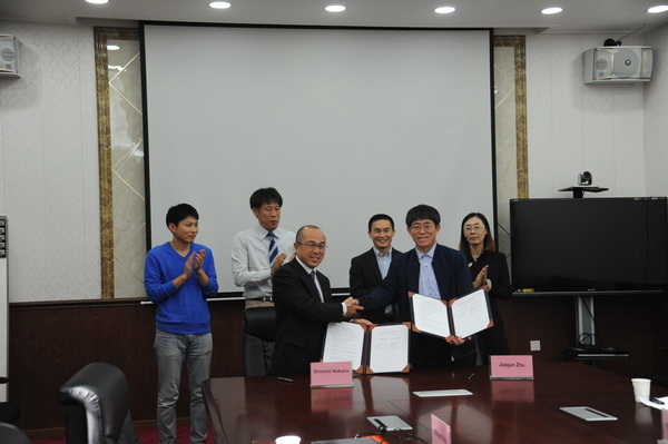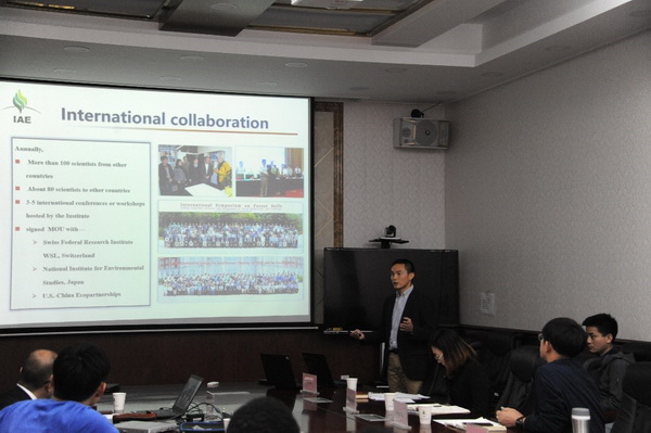 劉麗首先致歡迎辭,歡迎京都大學生態(tài)學研究中心2位專家來訪,并介紹了合作備忘錄的內(nèi)容。隨后Shinichi Nakano主任介紹了京都大學生態(tài)學研究中心(CER, Kyoto University)概況,包括研究方向,野外臺站,實驗設備、人員組成等。方運霆從建所歷史,發(fā)展歷程,一三五規(guī)劃實施等方面向京都大學專家介紹了沈陽生態(tài)所情況。隨后朱教君與Shinichi Nakano分別代表研究所和京都大學生態(tài)學研究中心簽署了合作備忘錄,為雙方在科學研究、學生培養(yǎng)等方面的深入合作奠定了基礎。