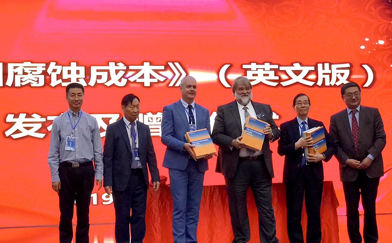《中國腐蝕成本》英文版《The Cost of Corrosion in China》由國際出版巨頭Springer(斯普林格)出版集團與科學出版社共同出版,全球發(fā)行。本次腐蝕大會上,中國腐蝕與防護學會榮譽理事長侯保榮院士、理事長王福會教授、常務副理事長李曉剛教授和中國工程院環(huán)境與輕紡學部處長王小文女士共同為新書揭幕,并舉行了向NACE International主席Terry Greenfield、歐洲腐蝕聯(lián)盟主席Arjan Mol及日本腐蝕防護學會代表田邊弘往先生的贈書儀式,進一步加強了我國與全球腐蝕科技界的交流合作。