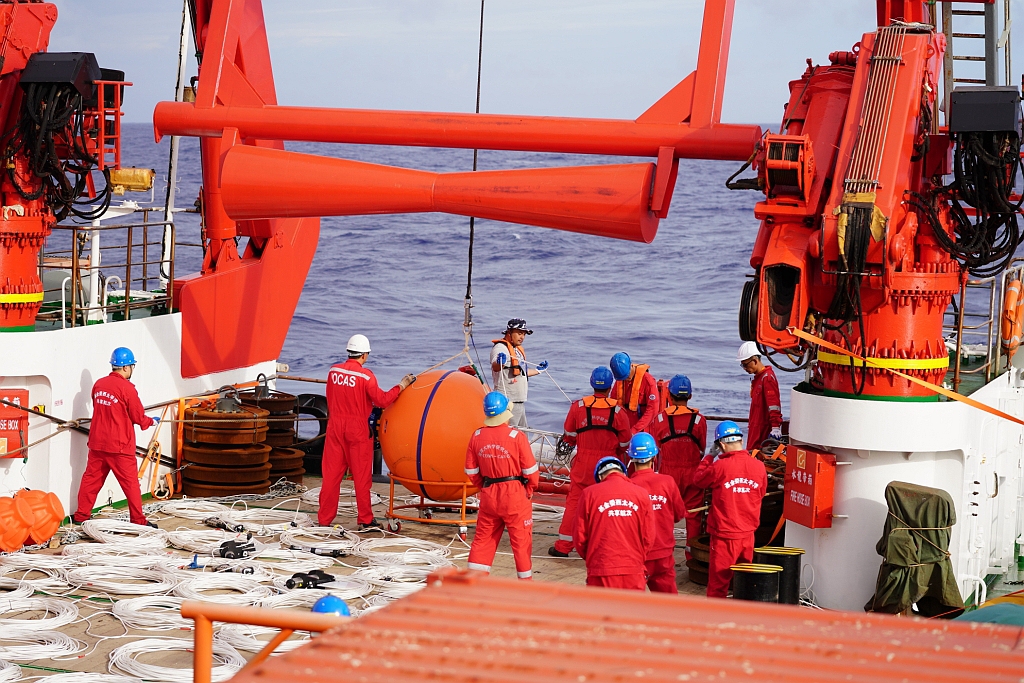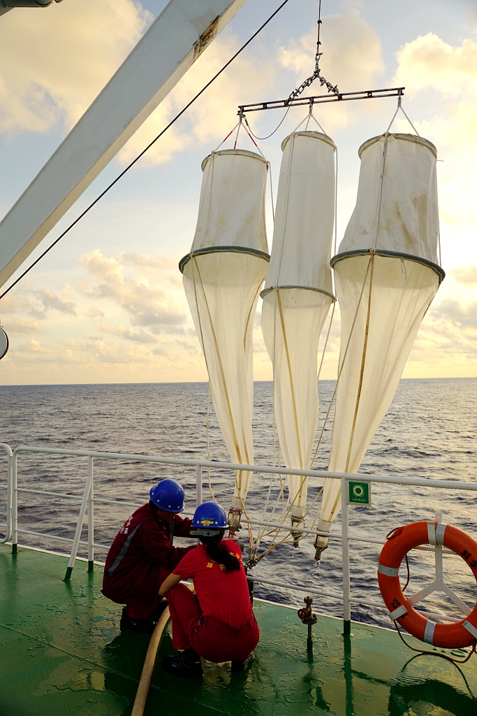 本航段共回收、布放23套潛標、2套浮標,完成62個站位、135站次的CTD大面站綜合觀測,完成垂直拖網(wǎng)26站、深海多聯(lián)網(wǎng)9站、微塑料拖網(wǎng)18站、深海箱式采泥5站,圓滿完成既定任務。航次首席科學家張林林研究員表示,通過維護和升級西太主流系潛標觀測網(wǎng),對太平洋西邊界流、緯向流系和中深層環(huán)流等開展大規(guī)模同步連續(xù)現(xiàn)場觀測,為西太平洋大洋環(huán)流和暖池三維結(jié)構(gòu)及多尺度變異規(guī)律研究、海洋模式驗證和改進提供了觀測數(shù)據(jù)支撐。