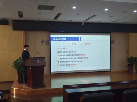 11月25日,青島能源所組織召開了第二屆職工代表大會第八次全體會議。人事教育處副處長蘇華做了研究所《事業(yè)單位養(yǎng)老保險改革政策及研究所相關(guān)工作介紹》的匯報,詳細介紹了自2014年10月國家啟動事業(yè)單位養(yǎng)老保險改革工作以來,研究所參與事業(yè)單位養(yǎng)老保險改革的政策依據(jù)和工作進展,重點介紹了按照國家要求在山東省建立社會保險賬戶、設(shè)立基本養(yǎng)老保險和職業(yè)年金項目、改革后養(yǎng)老保險基數(shù)計算方法、改革后人均月繳納社保上調(diào)水平、改革后新政策下退休待遇核算方法等內(nèi)容。人事教育處工作人員對職代會成員提出的“養(yǎng)老保險基數(shù)計算組成”、“人均月社保繳費上調(diào)水平”、“退休待遇核定”等具體問題做了詳細解答。