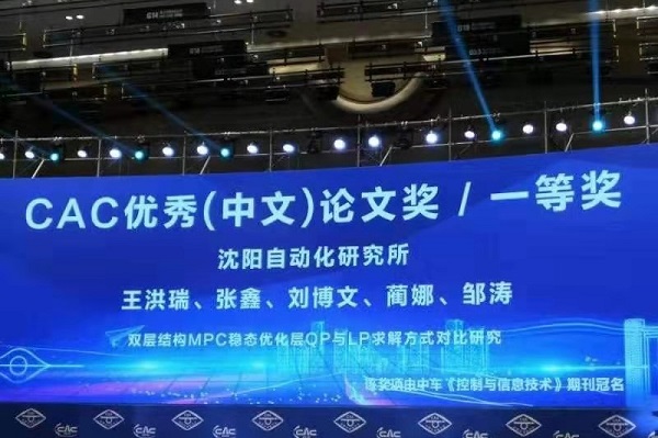 11月22至24日,2019中國自動化大會(CAC 2019)在浙江杭州舉行。中國科學(xué)院沈陽自動化研究所鄒濤研究員等撰寫的論文《雙層結(jié)構(gòu)MPC穩(wěn)態(tài)優(yōu)化層QP與LP求解方式對比研究》榮獲大會 “CAC優(yōu)秀(中文)論文獎(jiǎng)”一等獎(jiǎng)。
