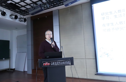 優(yōu)秀導(dǎo)師代表、中國科大化學(xué)與材料科學(xué)學(xué)院博士生導(dǎo)師俞漢青教授講述了他作為導(dǎo)師進行研究生培養(yǎng)的體會。俞漢青教授分析了新時期部分研究生的特點,以及針對學(xué)生的不同特點采用不同培養(yǎng)方式的教學(xué)理念。俞教授還舉出著名物理學(xué)家盧瑟福培養(yǎng)大批優(yōu)秀學(xué)生的先進事跡以及《自然》雜志期待的好導(dǎo)師作為例證,提出了培養(yǎng)研究生的方法與各位導(dǎo)師共勉。俞教授的報告精彩紛呈、發(fā)人深省,對我所研究生培養(yǎng)有很強的借鑒意義。