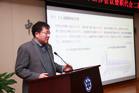 所長(zhǎng)劉中民代表所班子作了2019年度工作總結(jié)報(bào)告。報(bào)告全面總結(jié)了2019年全所工作的總體進(jìn)展,重點(diǎn)分析了研究所經(jīng)費(fèi)、文章、專利等各項(xiàng)發(fā)展指標(biāo),總結(jié)了“一三五”項(xiàng)目的進(jìn)展情況,特別是多功能復(fù)合膜的開發(fā)及相關(guān)制氫技術(shù)、新型碳材料的設(shè)計(jì)與能源應(yīng)用、高能量密度高安全性全固態(tài)鋰電池產(chǎn)業(yè)化系統(tǒng)、聚烯烴材料催化合成技術(shù)、新型生物農(nóng)藥的微生物合成與綠色生物制造等科研項(xiàng)目取得的喜人成績(jī),概括總結(jié)了研究所在國(guó)際合作、平臺(tái)建設(shè)、院地合作、產(chǎn)業(yè)化等方面取得的成績(jī),和人才隊(duì)伍建設(shè)、黨建文化等方面工作,介紹了山東能源研究院建設(shè)進(jìn)展。他指出,2019年,兩所融合發(fā)展穩(wěn)步推進(jìn),研究所管理水平提升、管理效率提高、管理制度完善,研究經(jīng)費(fèi)繼續(xù)穩(wěn)步增加,科技創(chuàng)新能力顯著提升,人才隊(duì)伍質(zhì)量結(jié)構(gòu)進(jìn)一步優(yōu)化,服務(wù)地方經(jīng)濟(jì)社會(huì)發(fā)展能力得到進(jìn)一步增強(qiáng),各項(xiàng)工作取得可喜進(jìn)展。在肯定成績(jī)的同時(shí),報(bào)告全面深刻地分析了研究所存在的問題,以及當(dāng)前面臨的形勢(shì)和任務(wù)。報(bào)告提出要繼續(xù)深入學(xué)習(xí)貫徹習(xí)近平新時(shí)代中國(guó)特色社會(huì)主義思想,面向國(guó)家重大需求,把握山東能源研究院建設(shè)新機(jī)遇,2020年要繼續(xù)全面提升黨建工作質(zhì)量,加強(qiáng)高端人才引進(jìn)培養(yǎng),加快重大創(chuàng)新平臺(tái)及重大項(xiàng)目的創(chuàng)新研究、構(gòu)建高質(zhì)量的國(guó)際合作網(wǎng)絡(luò)、加強(qiáng)重大成果產(chǎn)出匯聚與轉(zhuǎn)化。報(bào)告最后,劉中民希望全所職工深入研討,為研究所建成世界一流研究機(jī)構(gòu)提出意見和建議。