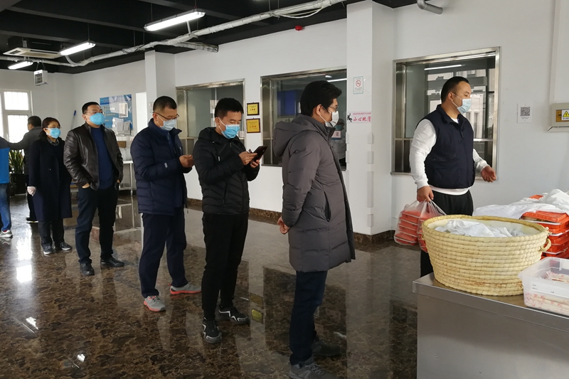 新鮮的肉蛋蔬菜等生鮮食材剛剛送到,幾位工作人員正在對(duì)外包裝進(jìn)行清潔消毒,然后一一分類儲(chǔ)存好。疫情期間,本著“易存放的多量儲(chǔ)備,不易存放少量儲(chǔ)備,減少與供貨商直接接觸”的原則,食品采購方面非常謹(jǐn)慎。