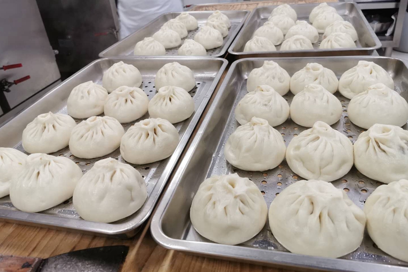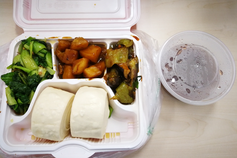 新冠肺炎疫情發(fā)生以來,為減少人員聚集,食堂取消了堂食,以盒飯?zhí)撞托问焦┎?。每天早?/span>9點,各部門訂餐聯(lián)絡(luò)人將本部門當(dāng)天所需午餐數(shù)量反饋給王保新,他會根據(jù)實際需求掌握備菜數(shù)量。為了確保營養(yǎng)均衡并照顧大家的口味,每天的套餐分成了A、B兩種,配套一份湯,每種套餐的主食都可以自選米飯或者面食。另外,還有單獨的包子等進行供應(yīng)。