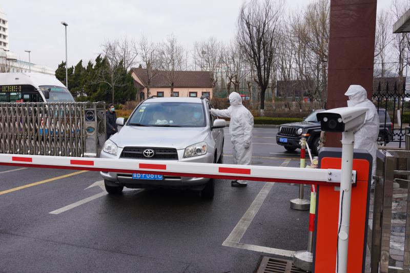 門崗對(duì)入所職工進(jìn)行體溫檢測(cè)