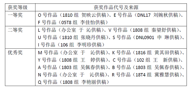 最后,經(jīng)來(lái)自所工會(huì)、婦委會(huì)、工會(huì)女工委員會(huì)、工會(huì)文體委員會(huì)的干部和委員以及研究所內(nèi)有一定專業(yè)技能的特邀嘉賓評(píng)委的無(wú)記名投票評(píng)選,最終評(píng)選出一等獎(jiǎng)作品3件,二等獎(jiǎng)作品5件,優(yōu)秀獎(jiǎng)作品9件。