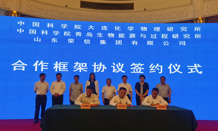 許輝、蔡睿、司相芳分別代表三方簽署“青島能源所(山東能源研究院)-大連化物所-榮信集團(tuán)”戰(zhàn)略合作協(xié)議。按照協(xié)議內(nèi)容,三方將在煤化工、煤氣制乙醇及其產(chǎn)業(yè)鏈延伸、芳烴衍生物、碳纖維、高性能電池材料等新能源、新材料、高端化工等領(lǐng)域開展技術(shù)研發(fā)、平臺(tái)共建、人才培養(yǎng)等全面合作,充分利用榮信集團(tuán)的產(chǎn)業(yè)基礎(chǔ)、資源優(yōu)勢(shì)和大連化物所、青島能源所(山東能源研究院)的技術(shù)、人才、成果等優(yōu)勢(shì),實(shí)現(xiàn)強(qiáng)強(qiáng)聯(lián)合,促進(jìn)產(chǎn)學(xué)研深度合作,加快技術(shù)創(chuàng)新和產(chǎn)業(yè)化步伐。