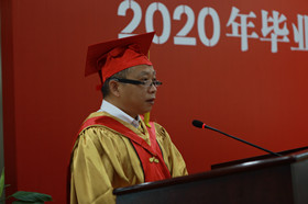 劉中民為典禮致辭,向2020屆全體畢業(yè)生表達(dá)了最熱烈的祝賀。他指出2020年是非常特殊的一年,疫情在全球蔓延,中國(guó)在疫情面前展現(xiàn)出強(qiáng)大的國(guó)家能力,億萬(wàn)人民群眾積極響應(yīng)黨的號(hào)召,眾志成城打贏了疫情防控阻擊戰(zhàn)。他對(duì)同學(xué)們?cè)谝咔橹械挠掠诿鎸?duì)和積極應(yīng)對(duì)給予充分肯定,祝賀他們?cè)谀婢持醒杆俪砷L(zhǎng)并取得學(xué)業(yè)成功。他勉勵(lì)同學(xué)們?cè)诿鎸?duì)不確定的未來(lái)時(shí),將個(gè)人命運(yùn)與國(guó)家和民族的前途相連,滋養(yǎng)家國(guó)情懷,苦練內(nèi)功擔(dān)負(fù)起時(shí)代賦予的歷史重任。同時(shí),希望同學(xué)們培養(yǎng)獨(dú)立思考的能力和習(xí)慣,看透事情本質(zhì),掌握事物發(fā)展規(guī)律,堅(jiān)持底線(xiàn)和紅線(xiàn)思維,做出正確而不悔的選擇,成就一番利國(guó)利民的事業(yè)。最后他祝愿同學(xué)們踏浪而行、成為勇立潮頭的弄潮兒、領(lǐng)航者。