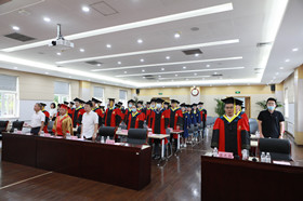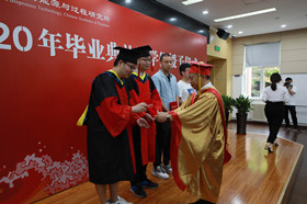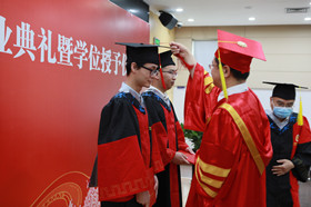 在歡快的進(jìn)行曲中,16名導(dǎo)師代表為畢業(yè)生們頒發(fā)了畢業(yè)證書(shū),呂雪峰為畢業(yè)生一一撥穗扶正流蘇,授予學(xué)位。