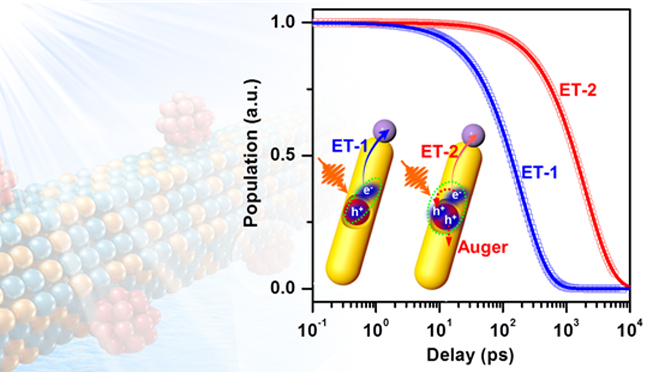 多電荷轉(zhuǎn)移過程在自然光合作用和人工光催化體系普遍存在。由于材料的光吸收截面和激發(fā)光源的光子通量所限制,通常很難在分子或納米材料中同時激發(fā)出多個電子空穴對并驅(qū)動多電荷同時轉(zhuǎn)移。更為常見的是,捕光材料逐個吸收光子并在每個光子吸收后驅(qū)動單個電荷轉(zhuǎn)移,從而在催化中心實現(xiàn)多電荷逐步累積。在這種逐步電荷分離的過程中,由于電子與空穴轉(zhuǎn)移速率的欠匹配(電子轉(zhuǎn)移速率往往要快于空穴轉(zhuǎn)移)以及催化劑轉(zhuǎn)化速率較慢,捕光材料和催化材料上不可避免地會出現(xiàn)多余電荷。在納米尺度,這些多余電荷的存在將導(dǎo)致強(qiáng)烈的多體效應(yīng)及庫倫勢壘,可能是納米材料中多電荷轉(zhuǎn)移的瓶頸所在。