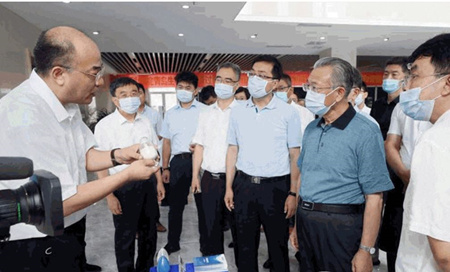 劉家義一行聽取了張凱研究員有關(guān)螺旋藻生產(chǎn)甘油葡糖苷的技術(shù)和微生物發(fā)酵制備反式烏頭酸技術(shù)、徐健研究員有關(guān)臨床單細(xì)胞拉曼藥敏性快檢儀成果的匯報(bào),深入了解了科研產(chǎn)品與實(shí)驗(yàn)裝置。