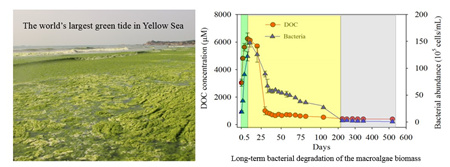 圖 滸苔綠潮場景及藻體長期降解過程中溶解有機碳和細菌豐度的動態(tài)變化