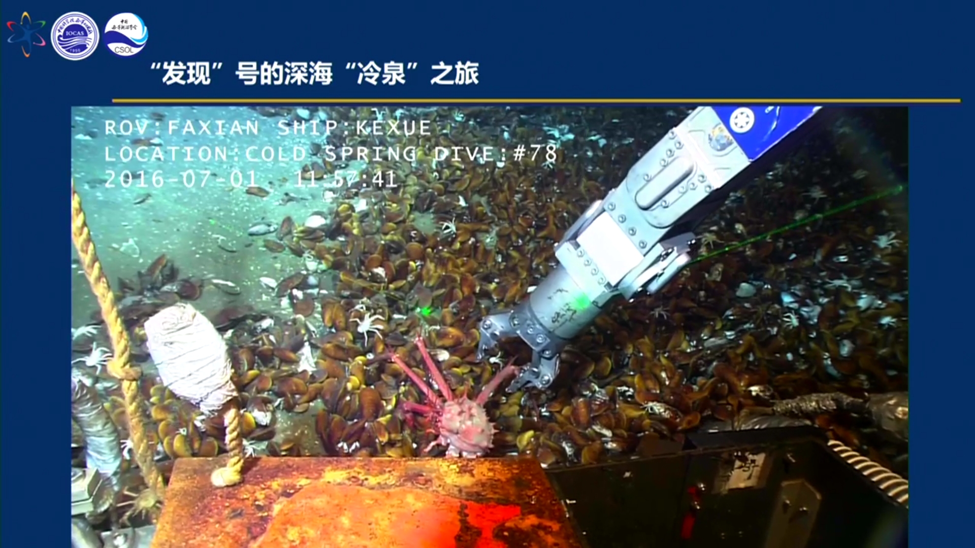 徐奎棟研究員展示海山考察拍攝的深海生物