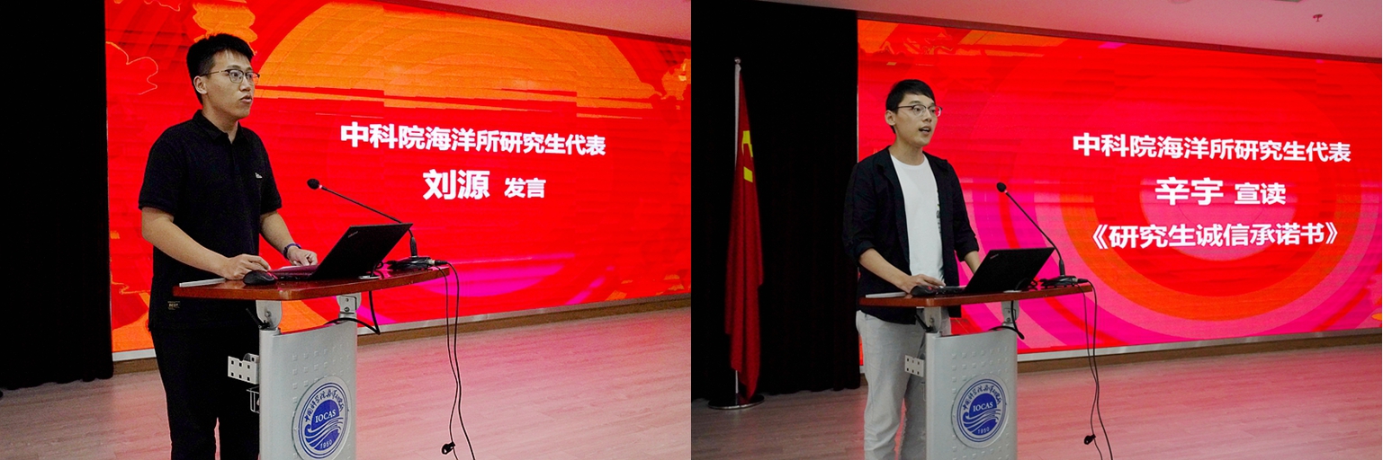 新生代表劉源在發(fā)言中表示,能夠進(jìn)入海洋所這支海洋科技國(guó)家隊(duì)學(xué)習(xí)深造,內(nèi)心充滿自豪。在未來的學(xué)習(xí)中,會(huì)繼承和發(fā)揚(yáng)老一輩科學(xué)家求真務(wù)實(shí)、勇攀高峰的科學(xué)精神,遵守科研道德規(guī)范,勤奮學(xué)習(xí)刻苦鉆研,修身立德志存高遠(yuǎn),以實(shí)際行動(dòng)詮釋新時(shí)代年青一代的責(zé)任與擔(dān)當(dāng)。