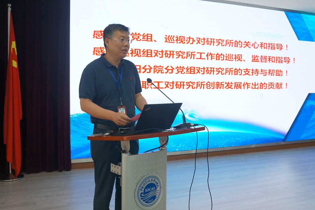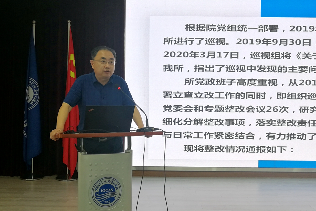 會(huì)上,所長王凡代表海洋所黨政領(lǐng)導(dǎo)班子作巡視整改情況報(bào)告,從組織實(shí)施情況、整改舉措成效、巡視認(rèn)識(shí)體會(huì)三方面對巡視整改工作情況進(jìn)行了通報(bào)。他詳細(xì)介紹了巡視工作流程,通報(bào)了巡視組提出的政治建設(shè)、思想建設(shè)、組織建設(shè)、作風(fēng)建設(shè)、紀(jì)律建設(shè)、反腐敗斗爭6個(gè)方面48項(xiàng)問題,并針對具體問題逐條通報(bào)了具體整改舉措。王凡表示,政治巡視是對黨政班子和研究所的全面政治體檢,是從嚴(yán)治黨的內(nèi)在要求,是研究所創(chuàng)新發(fā)展的政治保障。通過政治巡視,聚焦問題、剖析原因、落實(shí)責(zé)任、整改立制,全面梳理解決了研究所長期以來積累的沉疴頑疾和制約研究所發(fā)展的瓶頸問題,有力推動(dòng)和促進(jìn)了研究所管理水平提升。未來,研究所要進(jìn)一步強(qiáng)化對巡視整改成果的運(yùn)用,確保將政治巡視整改要求和成果轉(zhuǎn)化為推動(dòng)研究所改革創(chuàng)新發(fā)展的強(qiáng)大動(dòng)力,進(jìn)一步促進(jìn)研究所實(shí)現(xiàn)高質(zhì)量發(fā)展。