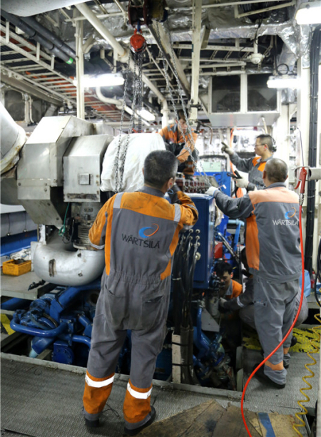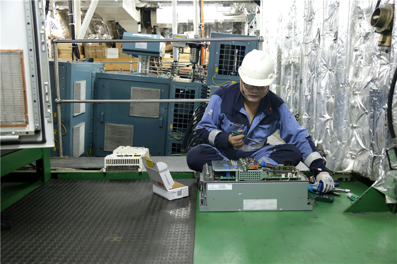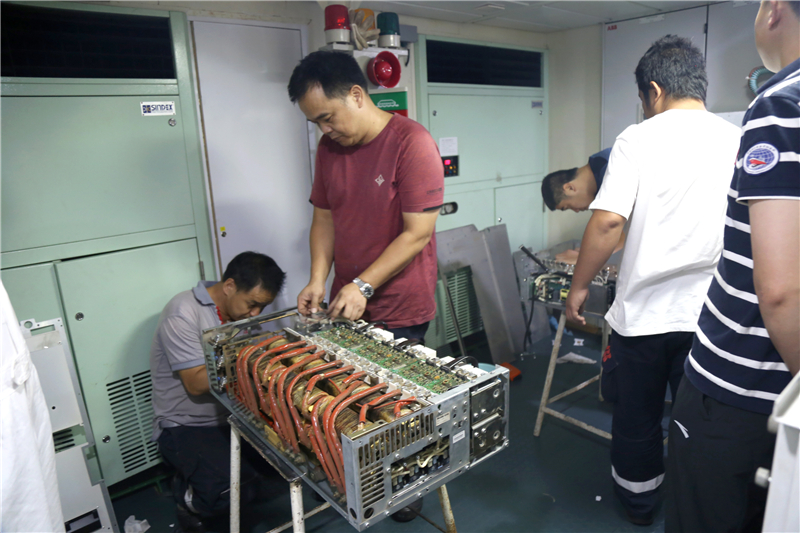 電力推進(jìn)系統(tǒng)及3#主發(fā)電柴油機(jī)的維修保養(yǎng)工程海試是“科學(xué)”號(hào)船舶設(shè)備維保計(jì)劃的重要內(nèi)容。8月下旬,工程更換了電力推進(jìn)系統(tǒng)變頻器的電容、電抗器、吊艙滑環(huán)的碳刷,對(duì)電力推進(jìn)系統(tǒng)的控制、通信、安保等系統(tǒng)進(jìn)行了檢測(cè)維保;按期拆檢了3#主發(fā)電柴油機(jī)的缸頭、活塞和連桿及附件等,并對(duì)燃潤(rùn)油、冷卻水系統(tǒng)以及電控安保系統(tǒng)進(jìn)行檢試維保。本次海試對(duì)電力推進(jìn)系統(tǒng)及3#主發(fā)電柴油機(jī)按試車要求分別進(jìn)行了碼頭系泊實(shí)驗(yàn)和海上負(fù)荷實(shí)驗(yàn),維保效果達(dá)到預(yù)期要求,恢復(fù)了設(shè)備的原有性能。