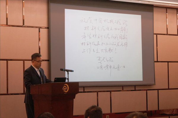 中國機(jī)械工程學(xué)會材料分會總干事長胡軍展示了中國機(jī)械工程學(xué)會理事長、歷屆材料分會主任委員與部分院士專家題詞