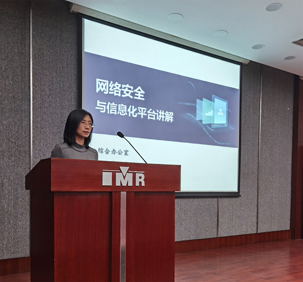 信息化辦公室主任李文菲作《網(wǎng)絡(luò)安全與信息化平臺(tái)講解》報(bào)告