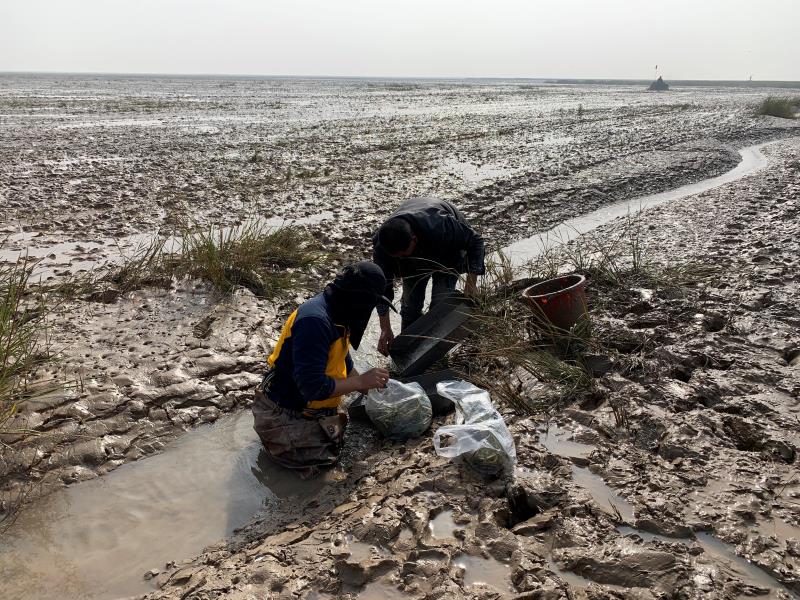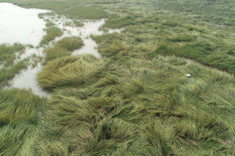 在弄清分布現(xiàn)狀與入侵機(jī)制的基礎(chǔ)上,團(tuán)隊(duì)探索建立了不同潮灘位的互花米草治理關(guān)鍵技術(shù)體系,包括“貼地刈割”、“刈割+翻耕”、“刈割+梯田式圍淹”等方法。該技術(shù)體系以物理防治為主,對環(huán)境擾動(dòng)小,治理后有利于本地物種恢復(fù)。由于是因地制宜,綜合治理成本低,治理效果好,不同方法的一次性滅草效果均超過90%。研發(fā)了潮間帶簡易高效的生態(tài)圍堰工程技術(shù),并開展機(jī)械化工程治理實(shí)踐,在黃河三角洲濱海濕地建立了100畝互花米草治理示范區(qū),這也是我國北方面積最大的互花米草治理示范區(qū),推廣治理面積2000畝。連續(xù)4年的跟蹤監(jiān)測表明,示范區(qū)內(nèi)沒有再出現(xiàn)互花米草;同時(shí)由于示范區(qū)內(nèi)營造了淺水生境,本土海草得以自然恢復(fù)。