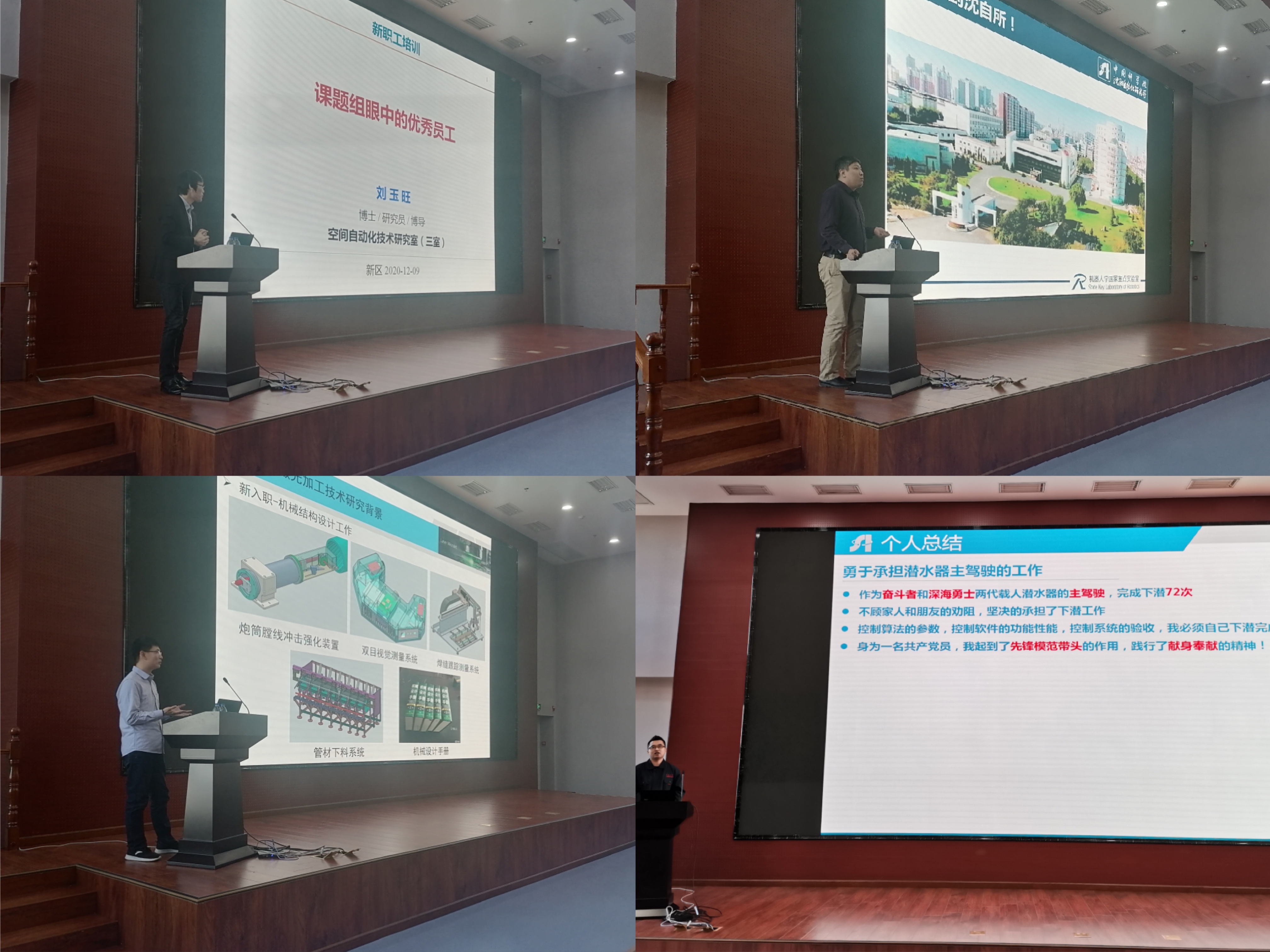 培訓(xùn)邀請了空間自動化技術(shù)研究室劉玉旺研究員、機器人學(xué)研究室韓志研究員和工藝裝備與智能機器人研究室曹治赫工程師作報告。他們分別從課題組長眼中的優(yōu)秀員工、優(yōu)秀員工經(jīng)驗介紹和優(yōu)秀新職工成長分享三個角度,結(jié)合各自的科研工作經(jīng)歷,向與會人員介紹了在研究所的成長歷程,分享了科學(xué)探索過程中的苦與樂,并提出了中肯的建議。