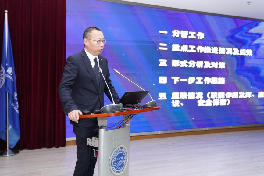 會上,黨委書記王輝,常務(wù)副所長楊紅生,副所長李超倫,黨委副書記、紀(jì)委書記畢偉分別就個人分管工作作專題報告和個人述職述廉。各實(shí)驗(yàn)室主任分別匯報了研究室2020年工作進(jìn)展及2021年發(fā)展思路。