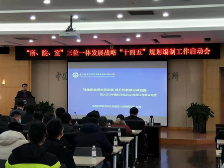 會上,研究所黨委書記彭輝以“強化使命擔當促發(fā)展提升創(chuàng)新水平謀自強—深入學習中國科學院2021年度工作會議報告”為題作了專題報告。彭輝指出,2020年以來,中國科學院在黨中央、國務院的堅強領導下,眾志成城、共抗疫情、勇攀高峰,取得了一批原創(chuàng)性的重大科技創(chuàng)新成果,系統(tǒng)總結了“率先行動”計劃第一階段取得的成效,進一步強化重大科技任務的組織領導和統(tǒng)籌協(xié)調(diào),以全面深化改革為動力,為全國科技創(chuàng)新能力提升提供了強大動力和根本保證。2021年,面對新形勢,以習近平同志為核心的黨中央對中科院提出了新要求,要緊緊圍繞“四個率先”和“兩加快一努力”,堅持以創(chuàng)新為核心,將強化國家戰(zhàn)略科技力量為首要重點工作,牢記初心使命,聚焦主責主業(yè),著力為國家科技自立自強提供重要保障??茖W院深入貫徹落實黨中央、國務院重大決策部署,提出九項年度重點工作,確?!笆奈濉遍_好局、起好步。研究所要深入學習科學院2021年度工作會議精神,提高責任意識,強化使命擔當,加強統(tǒng)籌謀劃,全面深化改革,著力推進研究所創(chuàng)新發(fā)展,加快提升科技自立自強能力。