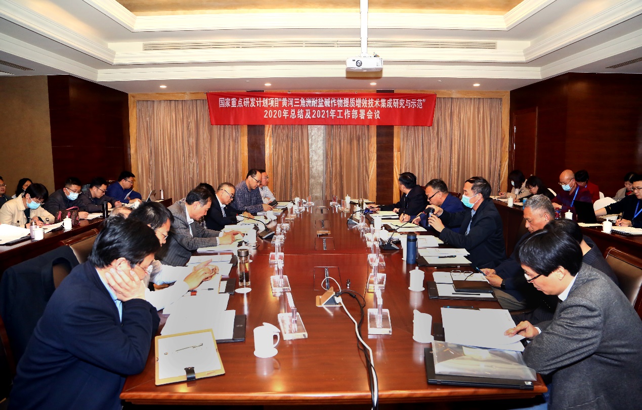 3月30日,國家重點研發(fā)計劃“主要經(jīng)濟作物優(yōu)質(zhì)高產(chǎn)與產(chǎn)業(yè)提質(zhì)增效科技創(chuàng)新”專項 “黃河三角洲耐鹽堿作物提質(zhì)增效技術(shù)集成研究與示范”項目階段總結(jié)交流暨2021年工作部署會議在黃河三角洲農(nóng)高示范區(qū)召開。江南大學(xué)金征宇教授、中國農(nóng)業(yè)科學(xué)院刁現(xiàn)民研究員、中國科學(xué)院遺傳與發(fā)育生物學(xué)研究所農(nóng)業(yè)資源研究中心劉小京研究員、中國科學(xué)院地理科學(xué)與資源研究所歐陽竹研究員、山東省農(nóng)業(yè)科學(xué)院劉兆輝研究員作為項目咨詢專家與會指導(dǎo)。項目各課題負(fù)責(zé)人及科研骨干40余人參加會議。中國科學(xué)院科技促進(jìn)發(fā)展局項目主管段瑞,中國科學(xué)院煙臺海岸帶研究所常務(wù)副所長楊紅生、原黨委書記高玲瑜,黃河三角洲農(nóng)業(yè)高新技術(shù)產(chǎn)業(yè)示范區(qū)管委會副主任畢建明出席會議。項目依托單位中國科學(xué)院煙臺海岸帶研究所科技處處長王德主持會議。