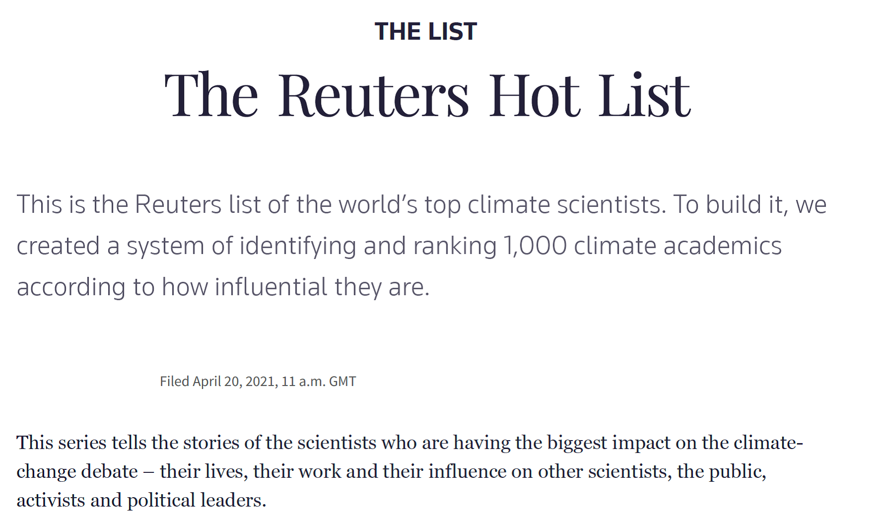 該評價系統(tǒng)依據(jù)三個獨(dú)立排名體系得分總和評價科學(xué)家的影響力:1988-2020年至少被引用的氣候變化研究論文數(shù)量(Number of Papers);已發(fā)表氣候變化研究論文的平均“同領(lǐng)域引用比”(Field Citation Ratio),即每篇論文的被引次數(shù)除以同年發(fā)表同領(lǐng)域論文的平均被引次數(shù);已發(fā)表氣候變化研究論文的Altmetric關(guān)注得分(Altmetric Attention Score),即指被社會媒體、政策性文件和非專業(yè)出版物等的綜合關(guān)注度。該評價系統(tǒng)使用的數(shù)據(jù)源自英國Digital Science的學(xué)術(shù)研究門戶網(wǎng)Dimensions數(shù)據(jù)庫(https://app.dimensions.ai/discover/publication),該數(shù)據(jù)庫收錄了1988年以來絕大多數(shù)的氣候變化研究論文。