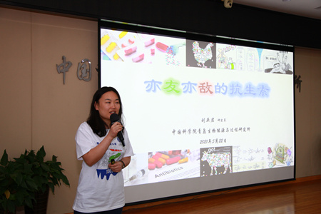 在“好看的舞臺劇”環(huán)節(jié),所內(nèi)職工、研究生精心準備了《科學(xué)家屠呦呦》的舞臺劇,通過演繹優(yōu)秀科學(xué)家故事,傳播科學(xué)理念,弘揚科學(xué)家精神,號召青少年向優(yōu)秀科學(xué)家學(xué)習(xí),成為一名有擔當、有責任、有理想、有志氣的中國好少年。在“漲知識的科普講座”環(huán)節(jié),我所劉亞君研究員以 “亦友亦敵的抗生素”為題,向青少年講解什么是抗生素、抗生素是如何發(fā)現(xiàn)的以及抗生素是怎么樣保護我們的。報告應(yīng)用大量實例、視頻動畫展示并緊密結(jié)合日常生活,受到學(xué)生的熱烈歡迎,學(xué)生們積極互動,現(xiàn)場氣氛活躍。