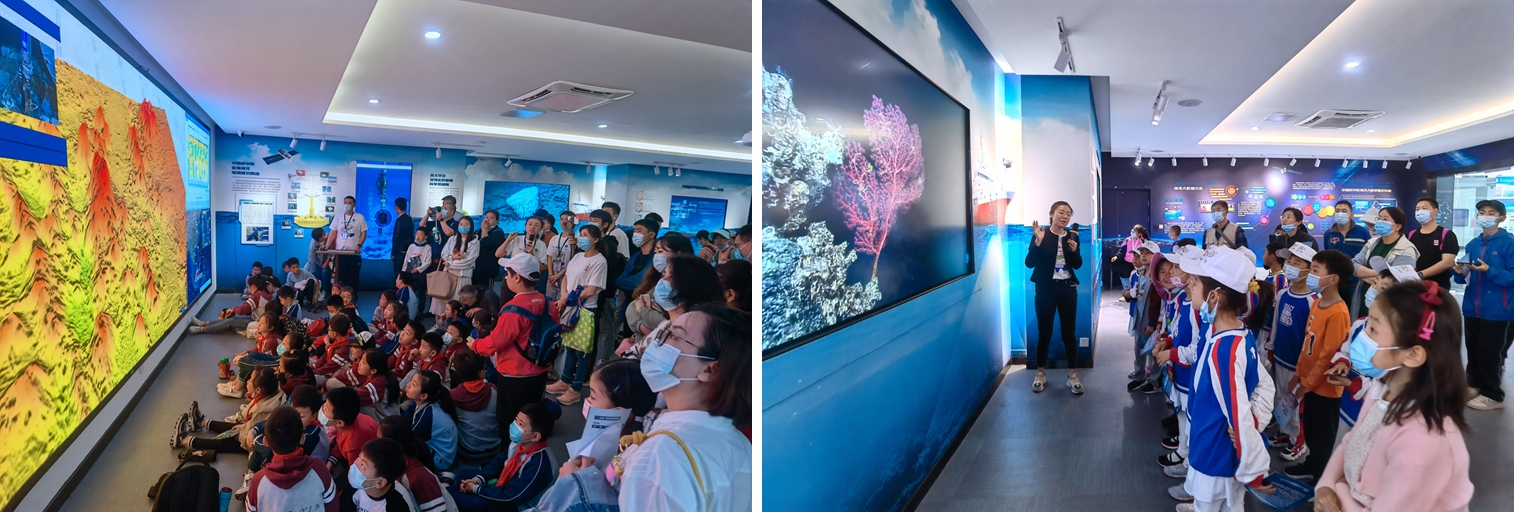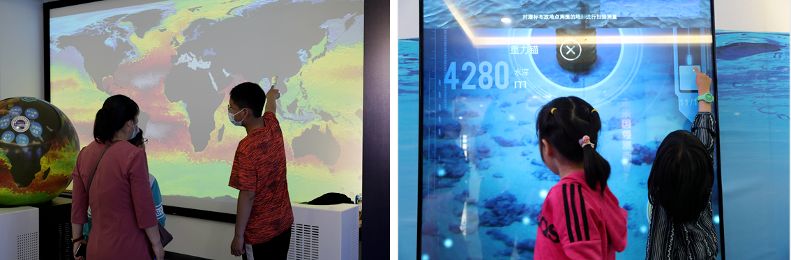 在海洋人工智能與大數(shù)據(jù)中心展廳,通過海洋數(shù)據(jù)可視化演示系統(tǒng),公眾看到了洋流、溫度、鹽度等海洋要素的全球分布,了解了人工智能在科學(xué)研究以及服務(wù)經(jīng)濟(jì)社會(huì)發(fā)展方面的實(shí)際應(yīng)用,也看到了利用“發(fā)現(xiàn)”號(hào)無人深潛器拍攝到的深??瓶家曨l,公眾們無不驚嘆于科技手段的進(jìn)步,震驚于幽幽深海中的生物竟如此多彩、各異而美麗,沉醉于大自然巧奪天工的天然呈現(xiàn)。