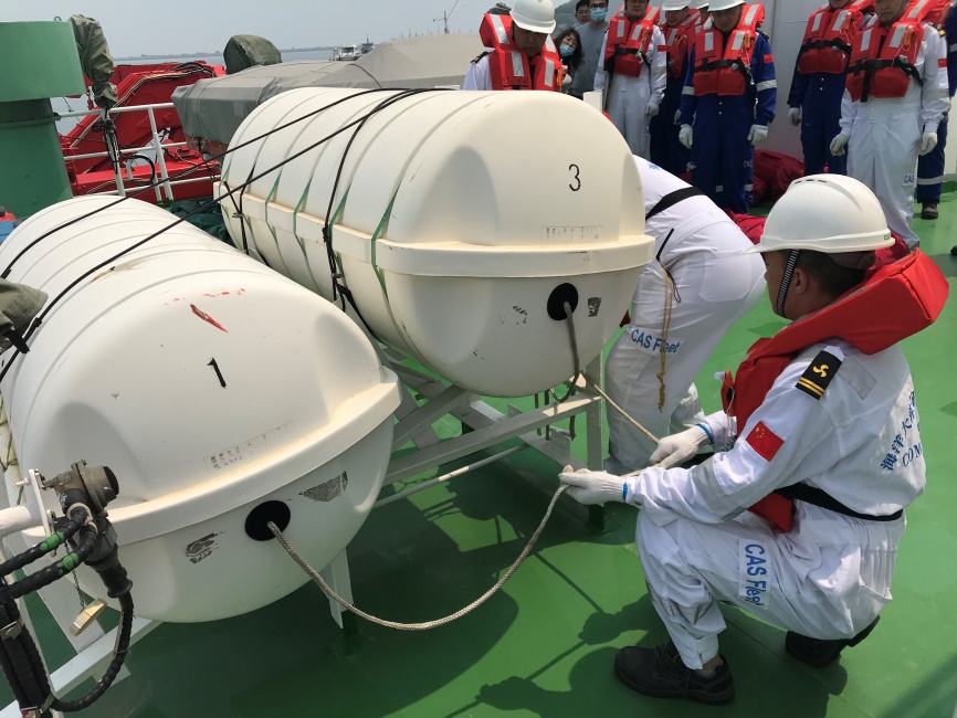 5月21日上午,中國科學(xué)院煙臺海岸帶研究所綜合辦公室組織部分專職、兼職安全員觀摩“創(chuàng)新一”號科考船安全演習(xí)。研究所紀(jì)委書記王曉斌到場并講話。他說,安全是做好一切工作的基礎(chǔ),科考船上的安全管理有其特殊性,船上安全演練是常態(tài)化的工作,綜合辦公室組織安全員來船上觀摩安全演練,也是一次發(fā)現(xiàn)問題隱患、相互學(xué)習(xí)的機(jī)會。