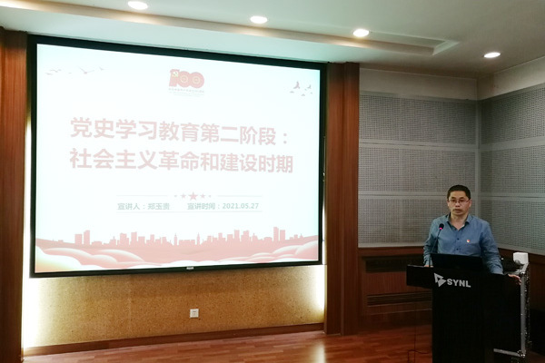 黨委委員鄭玉貴同志作了題為《黨史學(xué)習(xí)教育第二階段:社會主義革命和建設(shè)時期》的主題交流報告,全面回顧了新中國成立、抗美援朝和民主革命、社會主義制度的建立、社會主義建設(shè)的探索和曲折發(fā)展等時期的歷史,并詳細(xì)解讀了抗美援朝精神、塞罕壩精神、“兩彈一星”精神、鐵人精神、焦裕祿精神、雷鋒精神等。鄭玉貴同志還結(jié)合金屬所的發(fā)展歷史,介紹了金屬所在服務(wù)鋼鐵冶金工業(yè)恢復(fù)與發(fā)展、“兩彈一星”等方面做出的突出貢獻(xiàn)。