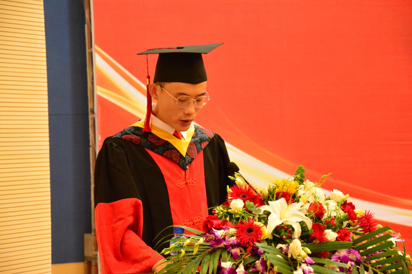 畢業(yè)典禮在雄壯的國歌聲中拉開帷幕,所有與會(huì)人員起立高唱國歌。首先郭秀銀宣讀優(yōu)秀學(xué)生獲獎(jiǎng)名單,王凡為優(yōu)秀畢業(yè)生頒獎(jiǎng)。導(dǎo)師代表陳令新研究員作了發(fā)言,代表煙臺(tái)海岸帶所導(dǎo)師,向2021屆畢業(yè)生們送上熱烈的祝賀和衷心的祝福,勉勵(lì)同學(xué)們?cè)谖磥硪粩嗵嵘鐚W(xué)科和跨領(lǐng)域研究的能力,做好海岸帶科學(xué)研究,成就越來越強(qiáng)大的自己。2018級(jí)博士戚龍斌代表畢業(yè)生發(fā)言,回顧總結(jié)了自己在煙臺(tái)海岸帶所度過的求學(xué)和生活的美好時(shí)光,對(duì)研究所和導(dǎo)師的栽培和幫助表示感謝,并表示作為海岸帶人,無論身在何處,都將牢記初心,不忘使命,以“跨越界限,共創(chuàng)價(jià)值”為理念,勇于創(chuàng)新、頑強(qiáng)拼搏,為海岸帶所爭光,為實(shí)現(xiàn)高水平科技自立自強(qiáng)貢獻(xiàn)自己的力量。