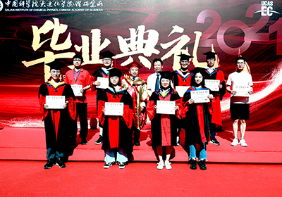 所學位評定委員會副主任周永貴研究員宣讀了大連化物所2021年研究生學位授予及擬授予名單。大連化物所8名學位評定委員會委員為參加典禮的畢業(yè)研究生代表頒發(fā)了畢業(yè)證書并扶正流蘇。