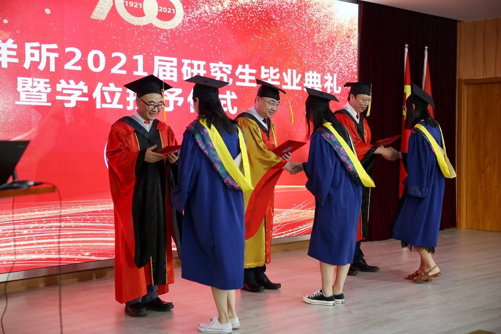 6月22日,中國科學(xué)院海洋研究所舉行2021年研究生畢業(yè)典禮暨學(xué)位授予儀式,114名畢業(yè)生告別母校踏上人生新征程。所長王凡、常務(wù)副所長楊紅生、副所長李超倫以及研究生導(dǎo)師代表、畢業(yè)研究生、家屬代表等參加典禮。