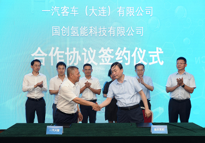會(huì)上,國(guó)創(chuàng)氫能公司與大連自貿(mào)片區(qū)、一汽客車(chē)、航天凌河等五家合作伙伴簽訂了戰(zhàn)略合作協(xié)議。