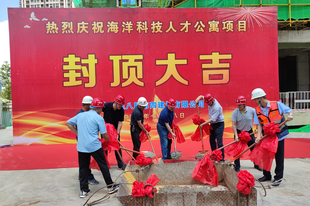 7月18日上午,中國科學(xué)院海洋研究所海洋科技人才公寓項(xiàng)目舉行主體封頂儀式,現(xiàn)場氣氛隆重,聳立的大樓主體被一條條紅色祝福標(biāo)語裝點(diǎn)得格外喜慶。