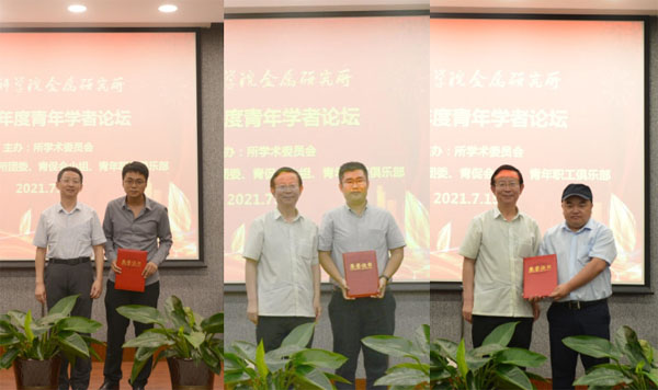 經(jīng)評(píng)委現(xiàn)場(chǎng)打分,本次論壇共評(píng)選產(chǎn)生一等獎(jiǎng)2名(獲獎(jiǎng)人:王政彬、楊勇強(qiáng)),二等獎(jiǎng)4名(獲獎(jiǎng)人:劉洋、高明浩、昝宇寧、王斌),三等獎(jiǎng)6名(獲獎(jiǎng)人:姚婷婷、馬會(huì)、徐偉、張瑞、王旻、羅頤秀),其余報(bào)告人獲得紀(jì)念獎(jiǎng)。同時(shí),論壇通過職工和研究生掃碼投票的方式推選出昝宇寧博士為本次論壇的“最佳人氣獎(jiǎng)”報(bào)告人。左良所長和徐巖書記分別為一、二、三等獎(jiǎng)獲獎(jiǎng)?wù)吆汀白罴讶藲猹?jiǎng)”報(bào)告人進(jìn)行了現(xiàn)場(chǎng)頒獎(jiǎng)。